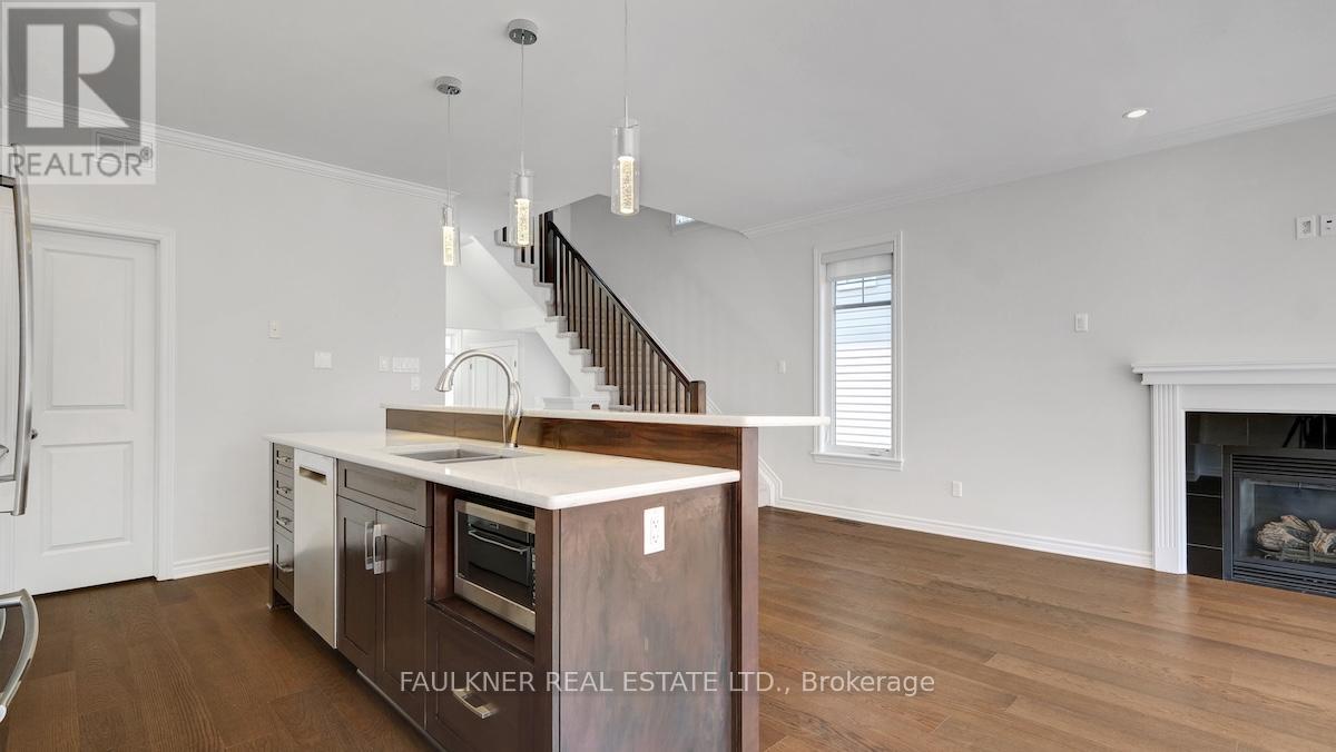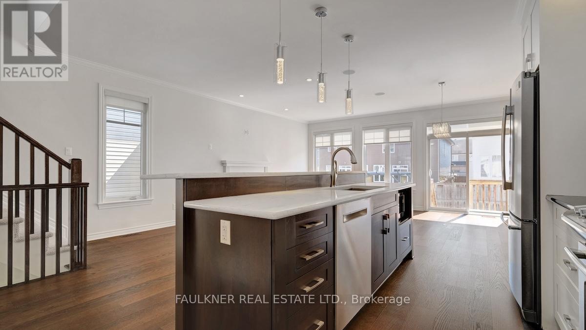 An exceptionally well-maintained and beautifully updated home, ideally located in the desirable area of Findlay Creek. This upscale Tamerack end unit offers a thoughtfully designed layout with 9ft main floor ceilings & spacious, light-filled rooms throughout. Brand new wide-plank hardwood flooring runs seamlessly across both the main and second levels. The main floor features a large tiled foyer with closet, convenient powder room & direct access to large garage. Enjoy the modern open-concept living & dining areas, complete with a cozy gas fireplace, crown mouldings & access to the fully fenced backyard – perfect for entertaining with well maintained Artic Spa hot tub. The kitchen is both stylish and functional, boasting stainless steel appliances, ample cabinetry, generous granite counter space & walk-in pantry. Upstairs, the primary bedroom offers a private retreat with a luxurious 5 piece ensuite & walk-in closet. Two additional well-sized bedrooms, full main bathroom, & convenient second-floor laundry room complete this level. The fully finished basement adds even more living space, featuring brand new vinyl plank flooring, large recreation room & plenty of storage. Freshly painted, featuring brand new carpet on the stairs, custom window coverings, air exchange, central vac system & surround sound system, this turnkey home is ready for you to move in and enjoy. Don t miss your opportunity to live in the quiet & family friendly community!