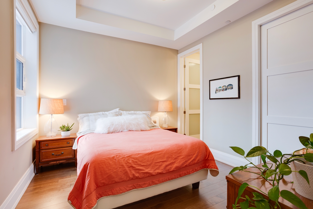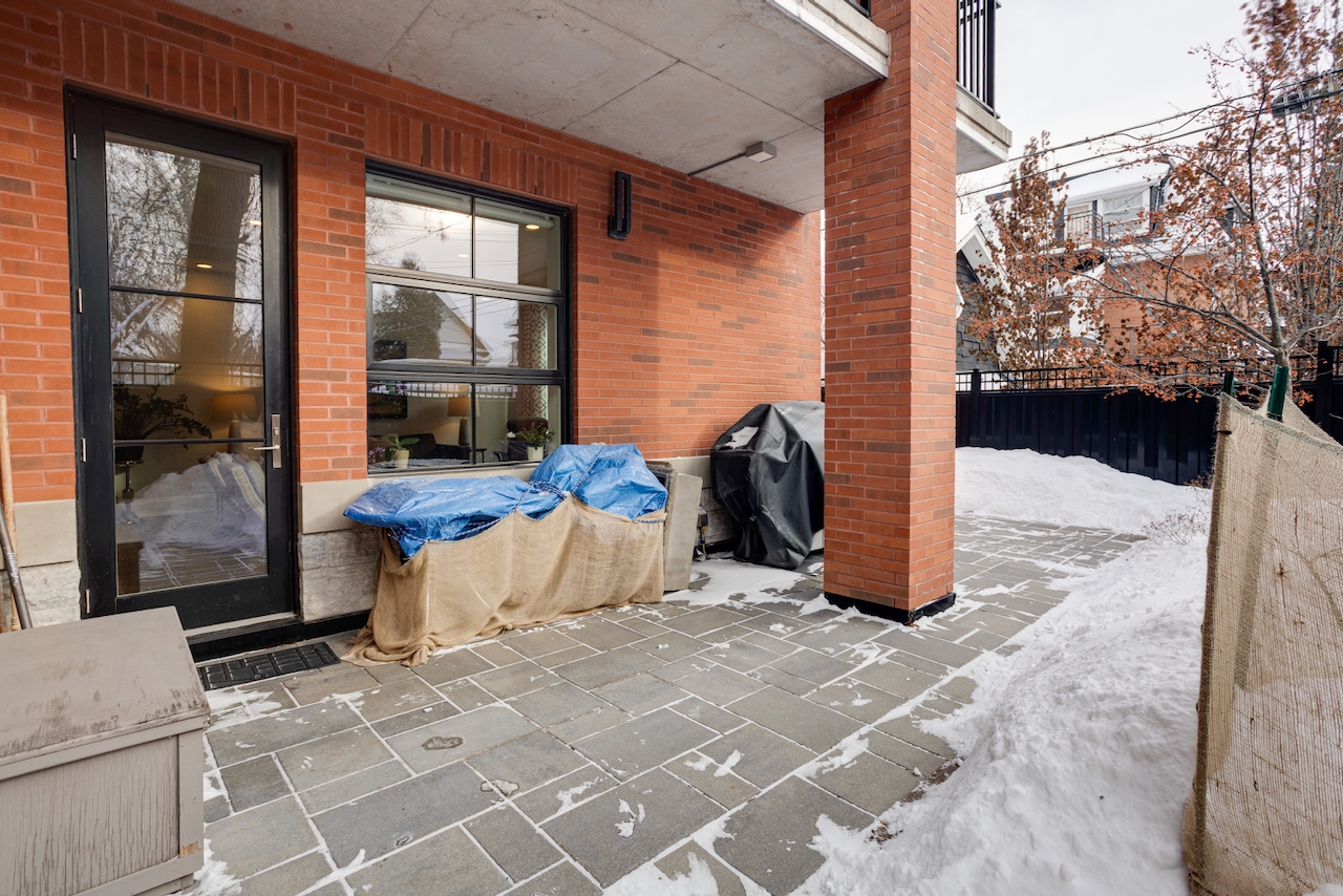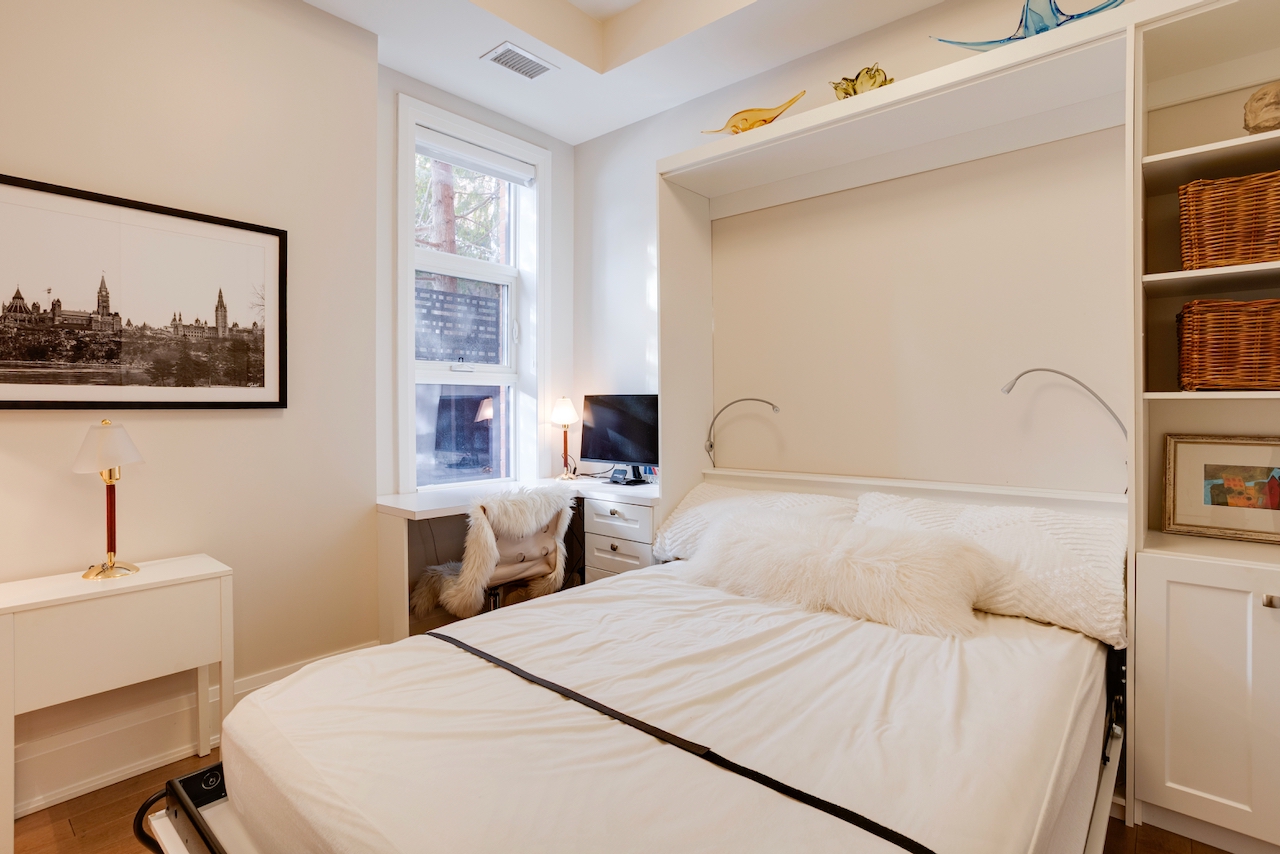 Light-filled interiors have been meticulously maintained and are ideal for both entertaining and everyday living. The secondary bedroom includes a built-in desk and Murphy bed, providing exceptional flexibility, with direct access to a bathroom. A powder room is conveniently located off the entry foyer. Well-situated stacked laundry with a utility sink is open to the hallway, enhancing the sense of space. Enjoy exclusive use of a south-facing outdoor area with a partially covered patio and gas BBQ outlet. Residents also have access to a fully furnished rooftop terrace with BBQ facilities, offering sweeping views of the mature neighbourhood and sunset vistas.