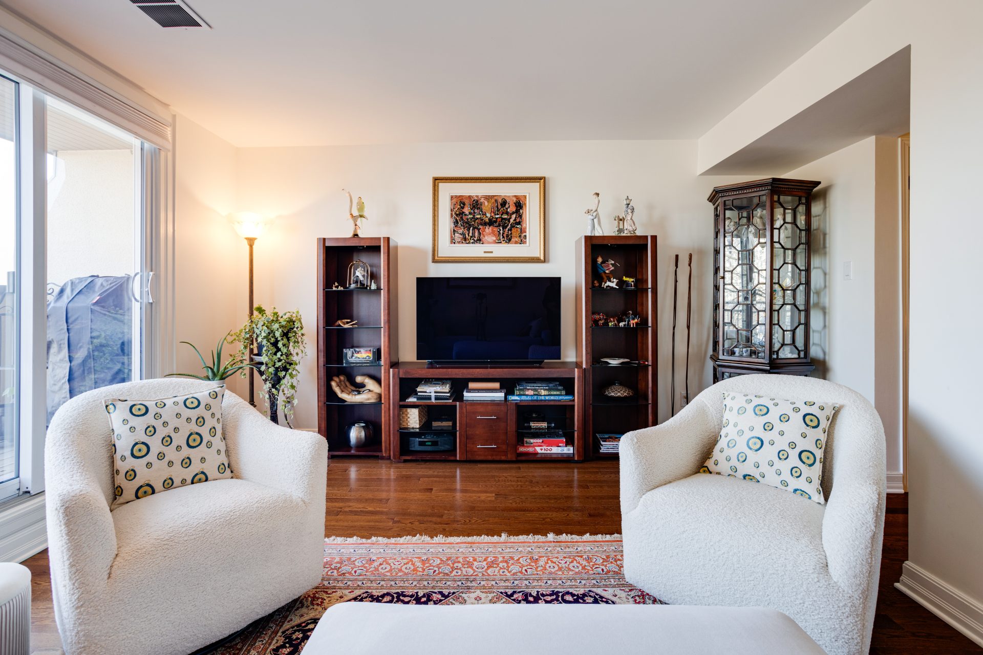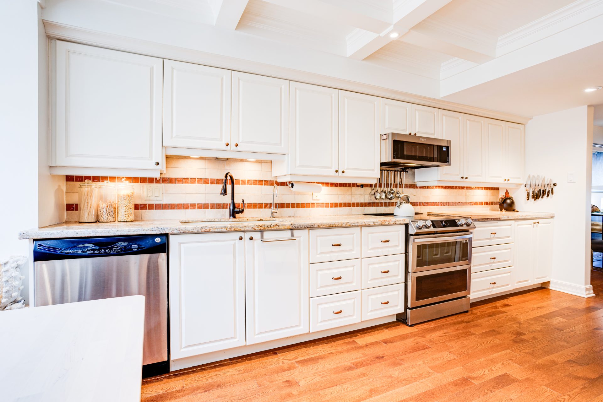 Breathtaking waterfront views! Expansive windows fill the space with natural light, seamlessly blending indoor and outdoor beauty. High-end renovations reflect refined taste and meticulous attention to detail. A magnificent gas fireplace anchors the bright, beautifully scaled interiors. The custom kitchen is flawlessly designed, featuring a built-in banquette, granite counters, a wine fridge, and an exquisitely detailed ceiling with pot lights. Oak hardwood floors throughout, adding warmth and elegance.