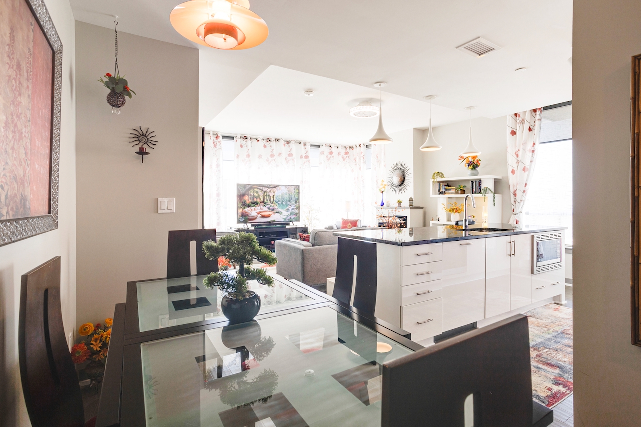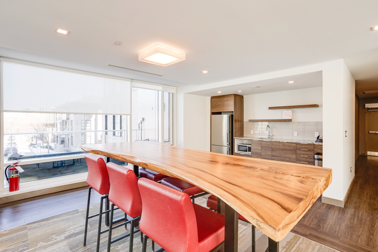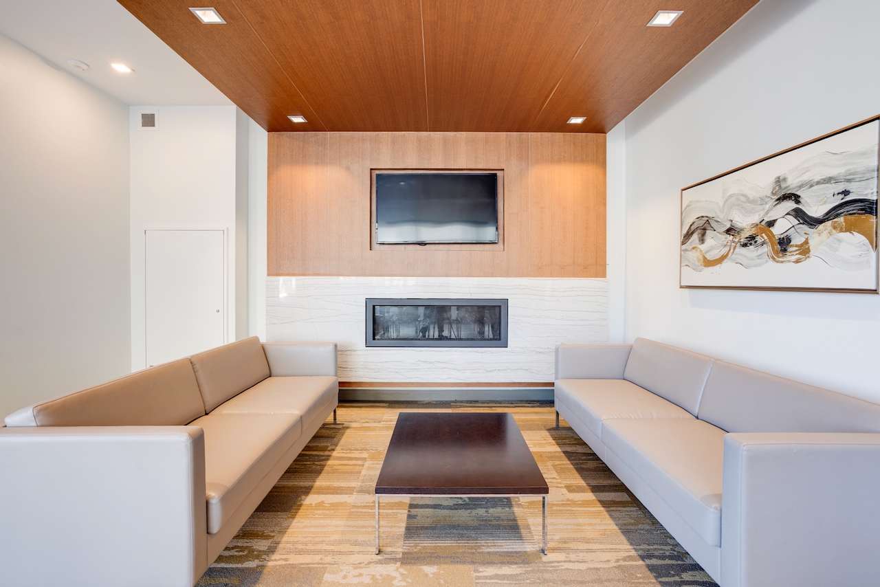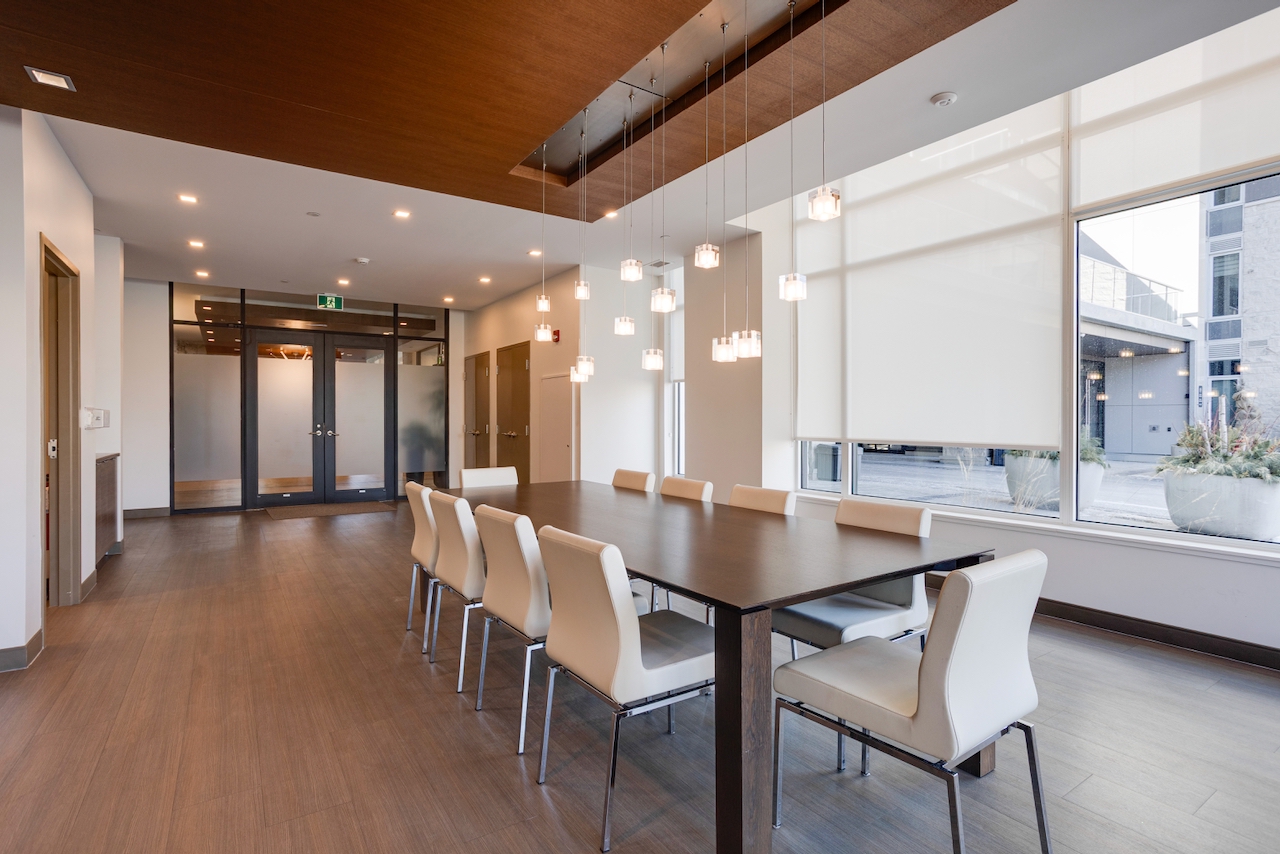 Outstanding amenities foster a strong sense of community and include a sun-filled second-level lounge with floor-to-ceiling windows, outdoor terraces, fireplace, billiards, kitchenette, and large-screen TV; a fully equipped fitness room and yoga studio; and a grand main-floor lounge with formal dining, seating areas, and full kitchen for large-scale gatherings. A community calendar keeps social life engaging for those who wish to participate. The bright main-floor guest suite features high ceilings, and visitor parking is also available for rent. Additional features include wheelchair-accessible washrooms, a car wash bay, dog wash, and bicycle storage.